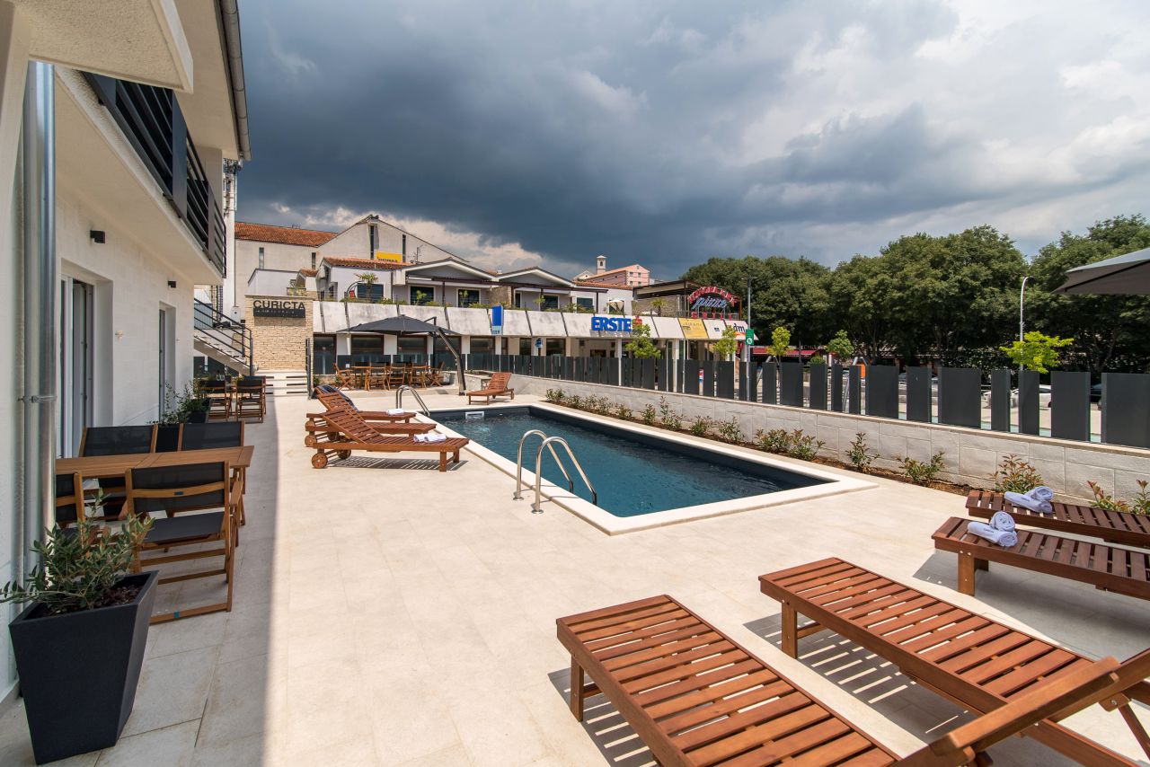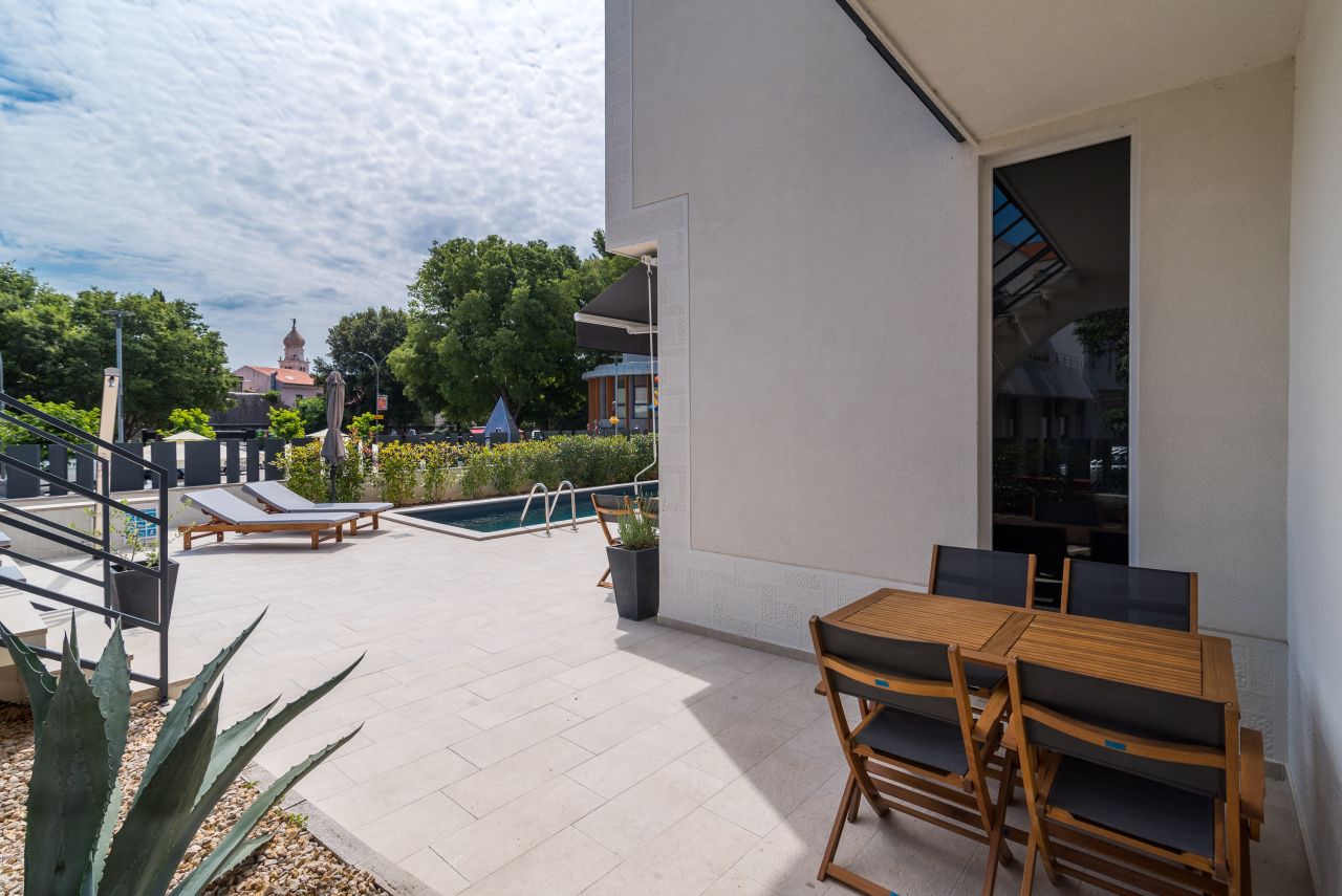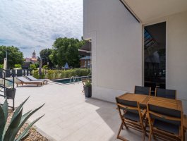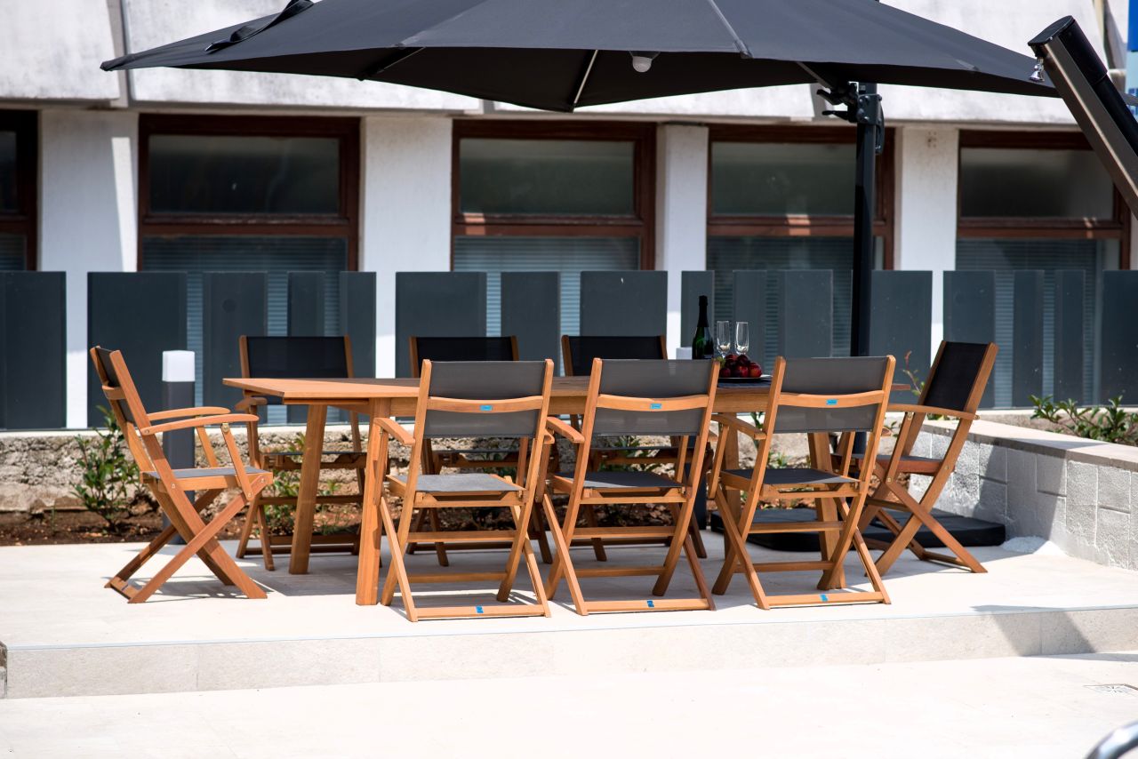 Terasa : terasa u dvorištu (prolaz), stol i stolice na raspolaganju, ležaljke, suncobran.