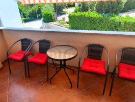 Balkon : vlastiti balkon, natkriven, stol i stolice na raspolaganju.