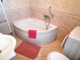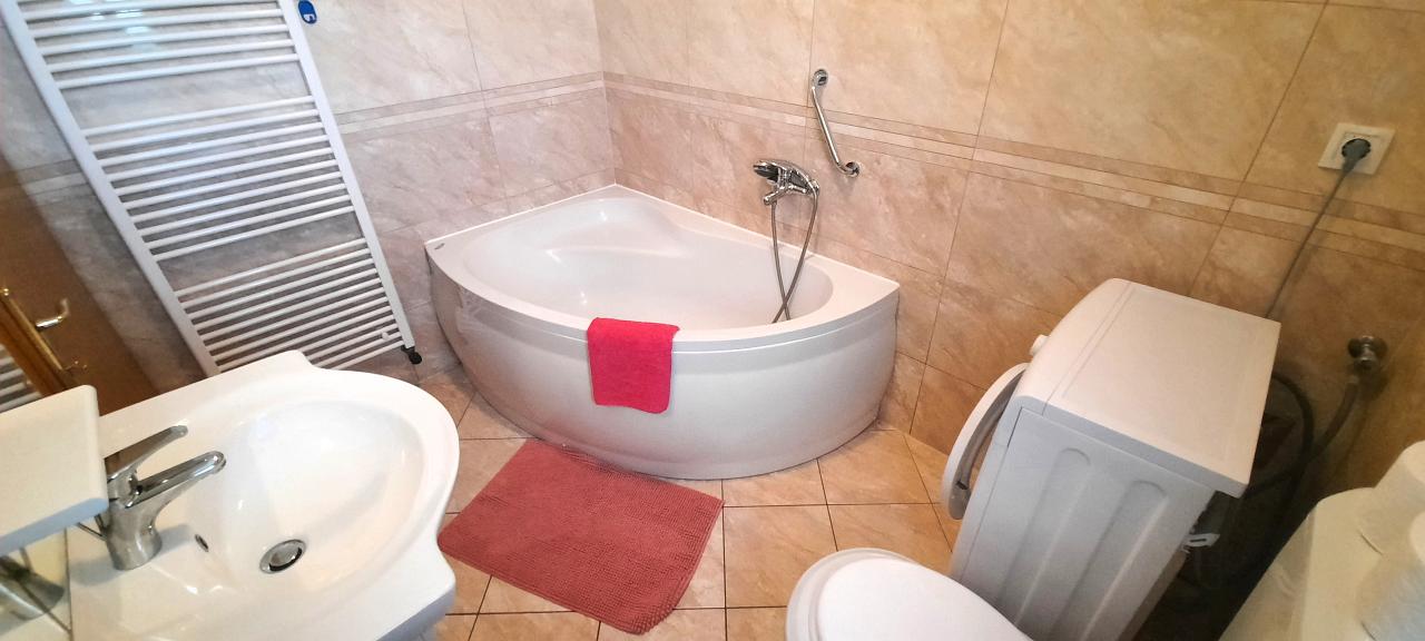 Kupaonica 1: kupaonica s wc-om i kadom, ručnici na raspolaganju (1 veliki, 1 mali po osobi po tjednu), sušilo za kosu, bide, perilica rublja.