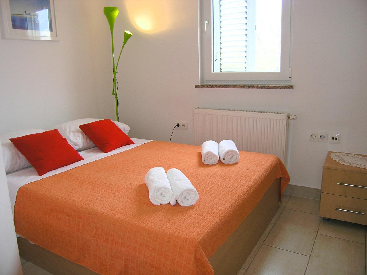Spavaća soba 2: dvokrevetna soba, bračni krevet, pločice, krevetnina se mijenja svakih 7 dana.
