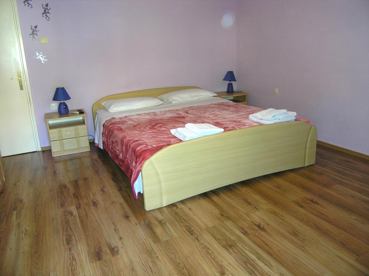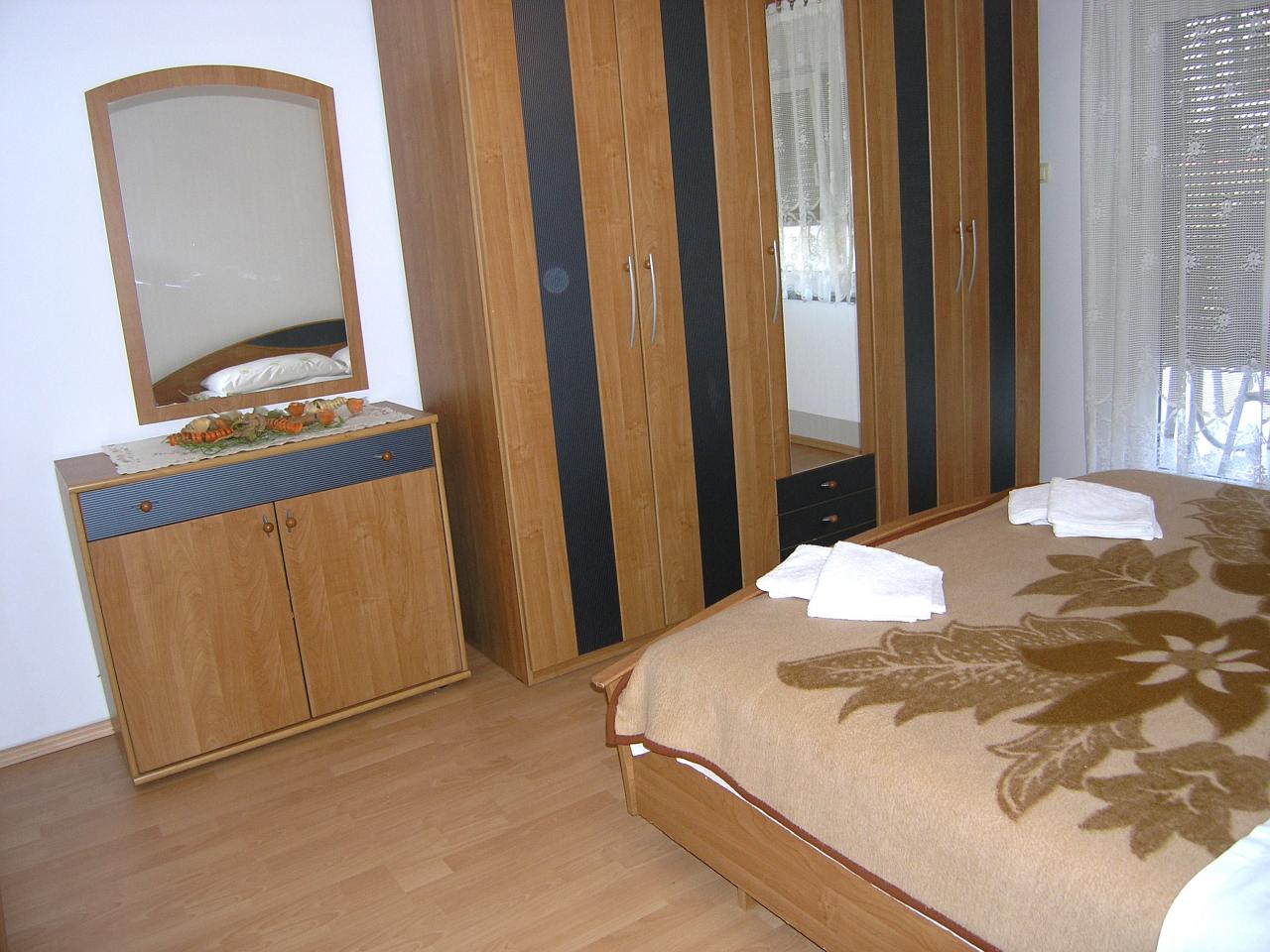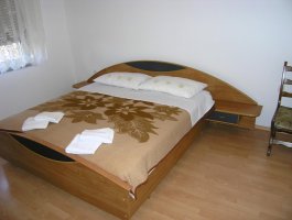 Spavaća soba : dvokrevetna soba, bračni krevet, laminat, s terasom, krevetnina se mijenja svakih 7 dana.