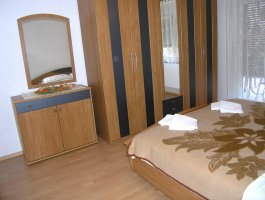 Spavaća soba : dvokrevetna soba, bračni krevet, TV sat, s terasom, krevetnina se mijenja svakih 7 dana.