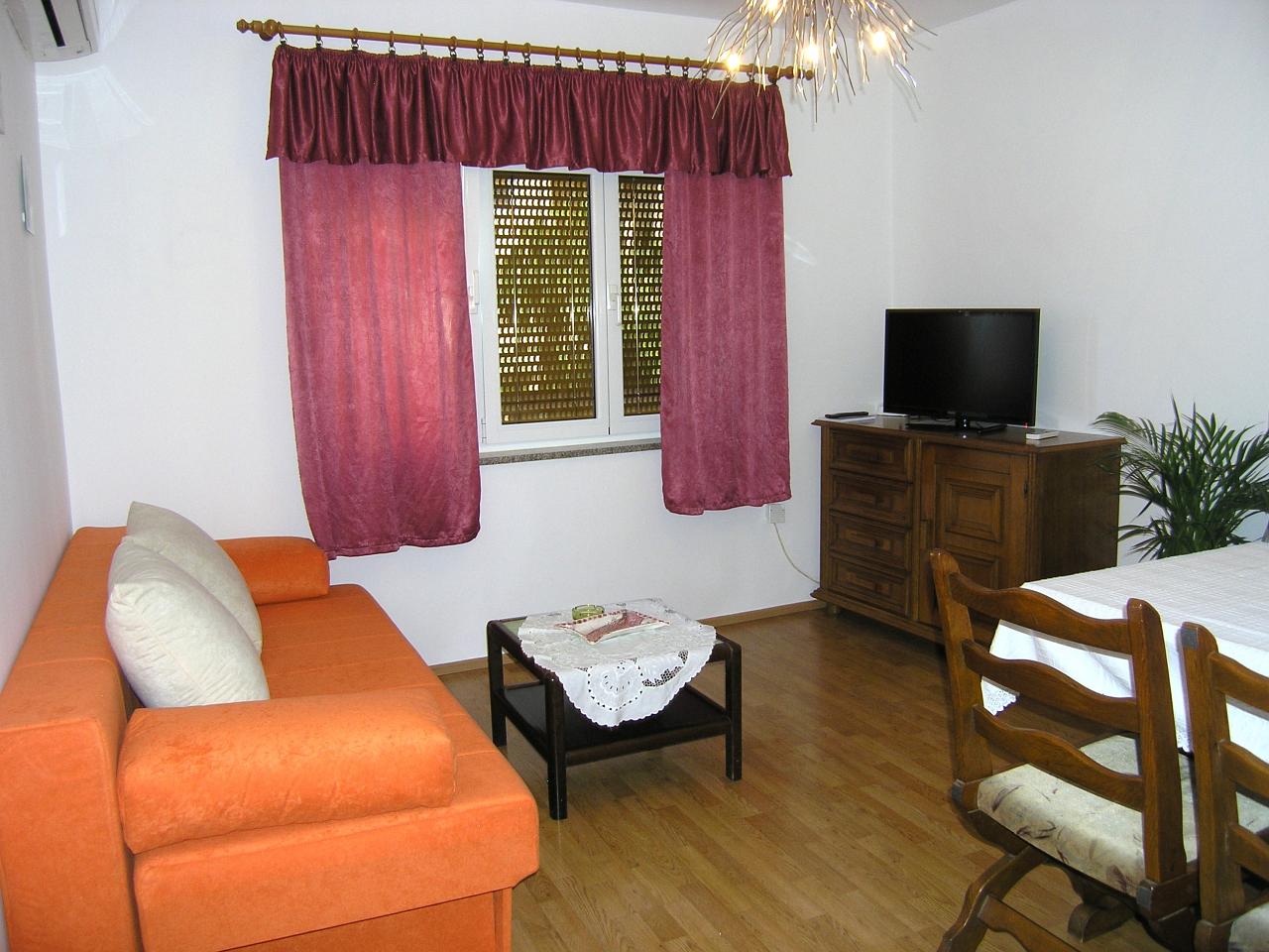 Dnevni boravak : dnevni boravak i blagavaonica su jedna prostorija, stol i stolice za sve osobe, jedan pomoćni ležaj na kauču, TV sat, laminat.