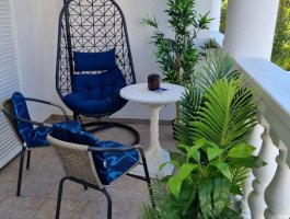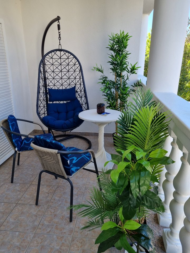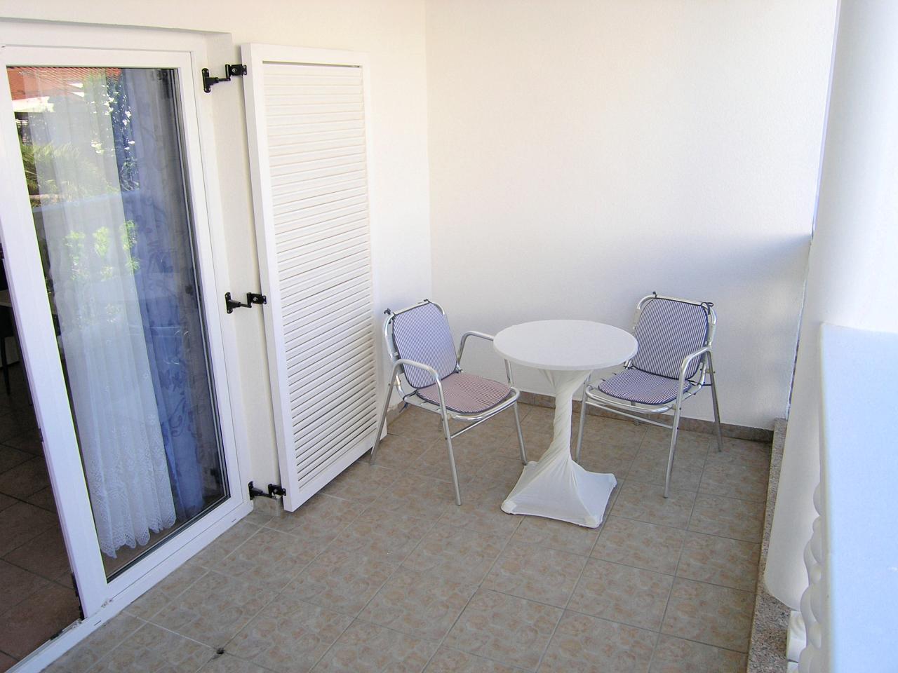 Balkon : vlastiti balkon, natkriven, stol i stolice na raspolaganju.