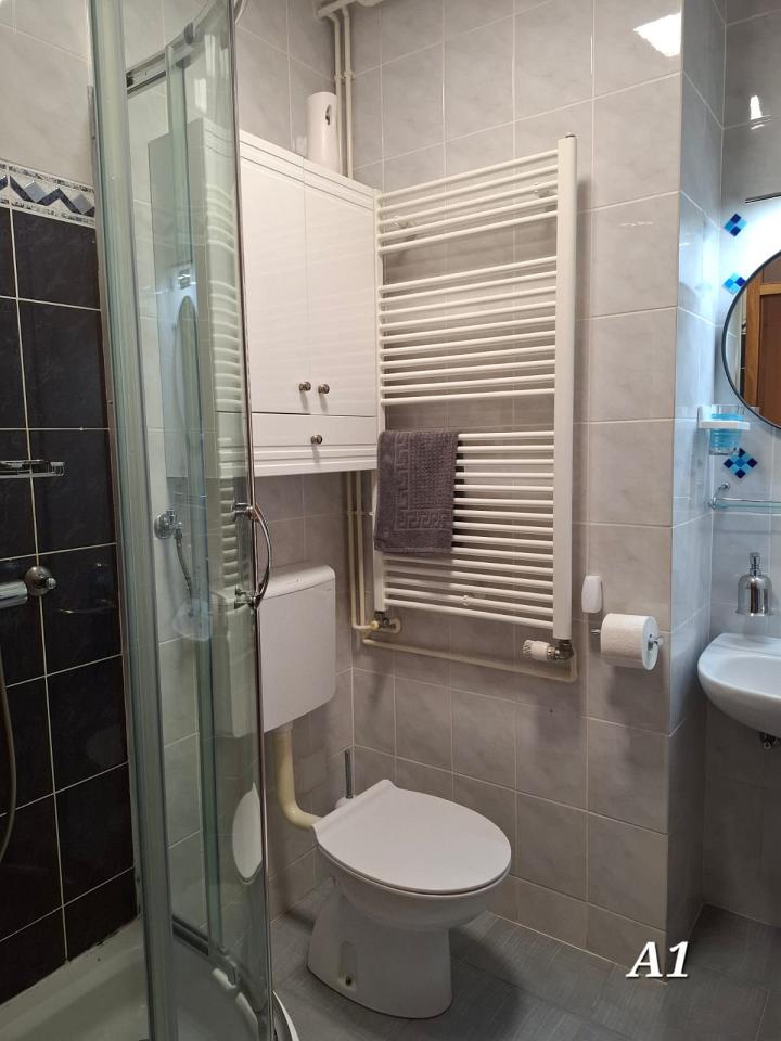 Kupaonica : kupaonica s wc-om i tušem, ručnici na raspolaganju (1 veliki, 1 mali po osobi po tjednu).