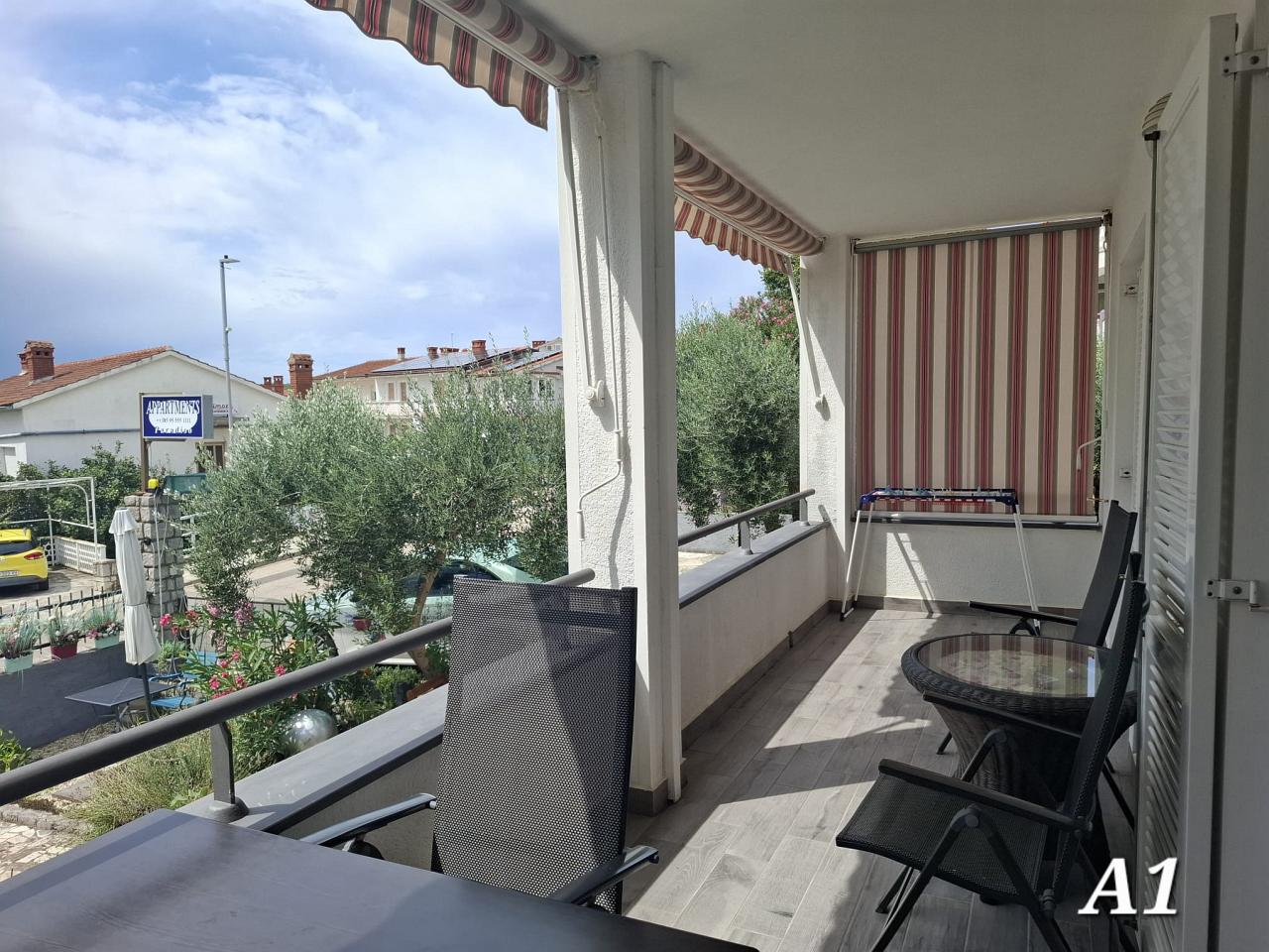 Terasa : vlastita terasa, natkrivena, s pogledom na more, stol i stolice na raspolaganju.