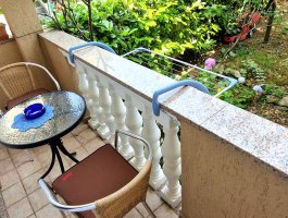 Balkon : vlastiti balkon, natkriven, stol i stolice na raspolaganju.