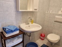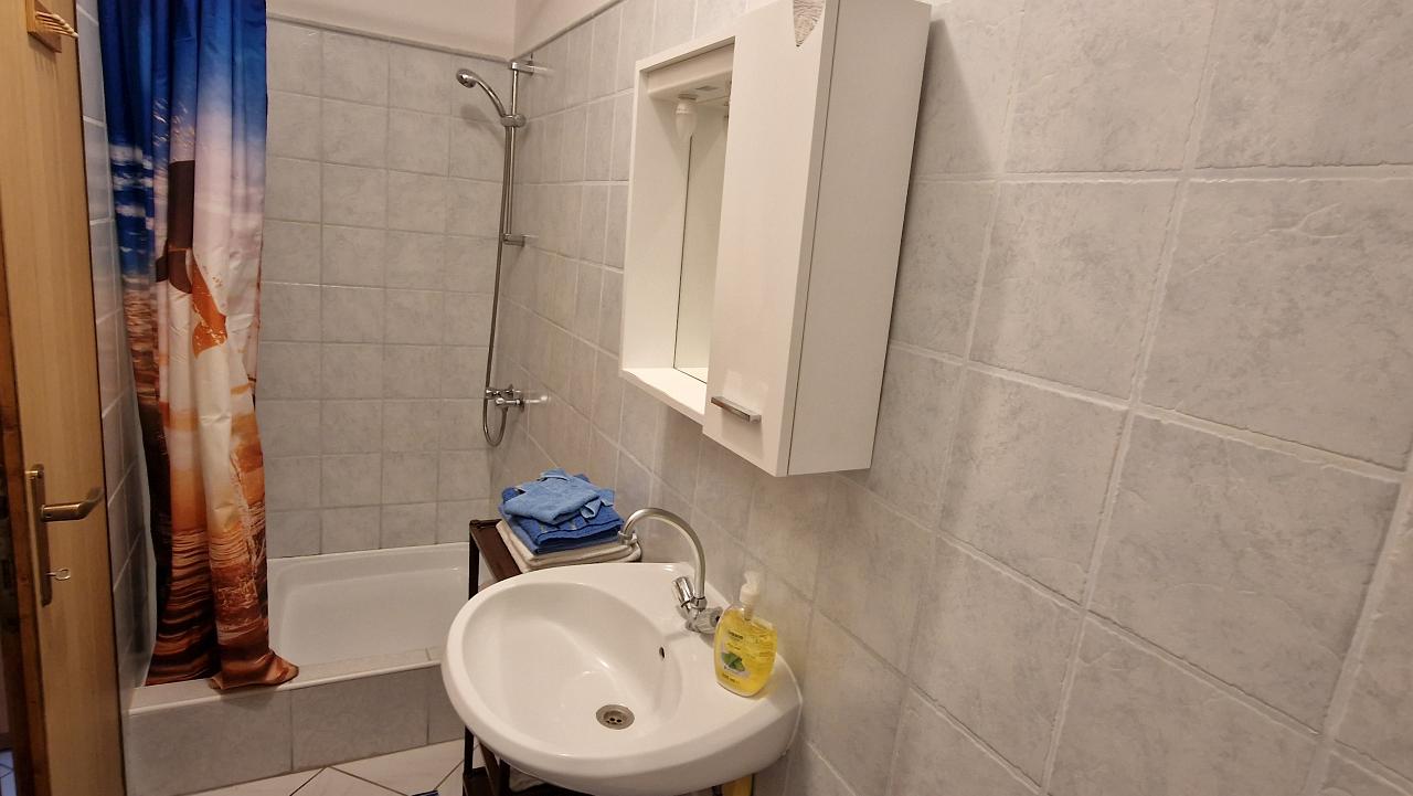 Kupaonica : kupaonica s wc-om i tušem, ručnici na raspolaganju (1 veliki, 1 mali po osobi po tjednu).