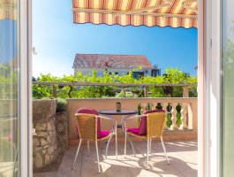 Terasa : vlastita terasa, stol i stolice na raspolaganju, djelomično natkrivena, tenda.