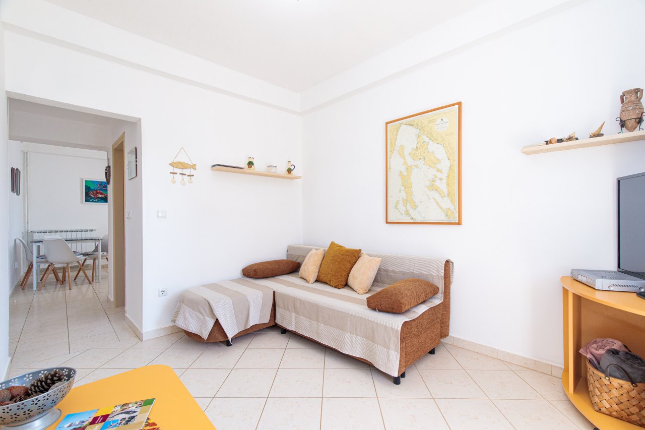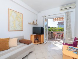 Dnevni boravak : dnevni boravak je zasebna prostorija, stol i stolice za sve osobe, jedan pomoćni ležaj, pločice, s terasom.