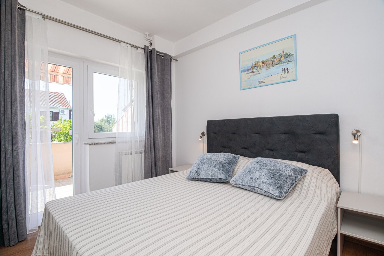 Spavaća soba : dvokrevetna soba, bračni krevet, laminat, s terasom.