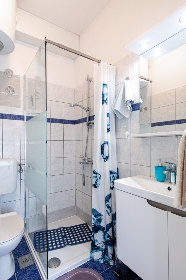 Kupaonica : kupaonica s wc-om i tušem, ručnici na raspolaganju (1 veliki, 1 mali po osobi po tjednu), fen.