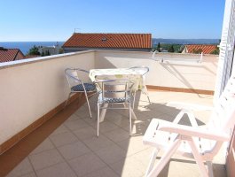 Balkon : vlastiti balkon, djelomično natkriven, pogled na more, stol i stolice na raspolaganju.