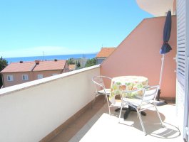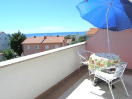 Balkon : vlastiti balkon, djelomično natkriven, pogled na more, stol i stolice na raspolaganju.