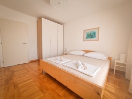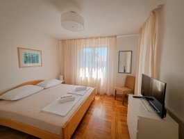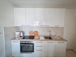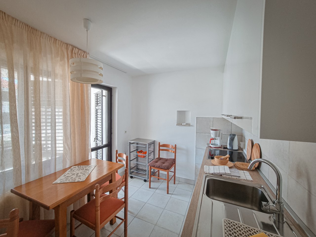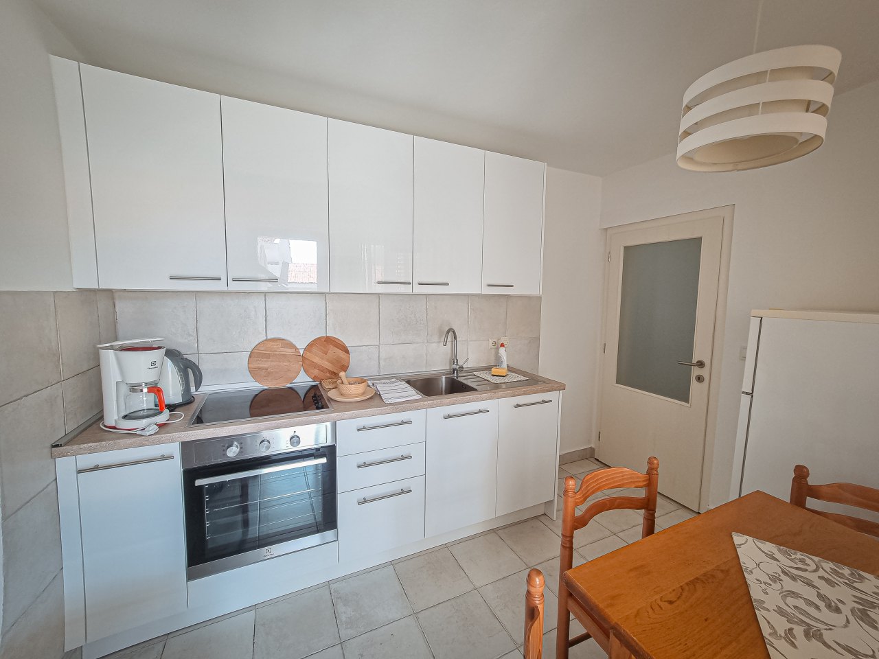 Kuhinja : stol i stolice za sve osobe, posuđe za kuhanje te pribor za jelo u apartmanu, kuhinjske krpe uključene, električni štednjak, pećnica, hladnjak sa zamrzivačem, perilica za suđe, filter aparat za kavu i kuhalo za vodu.