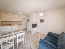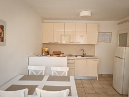 Kuhinja : stol i stolice za sve osobe, posuđe za kuhanje te pribor za jelo u apartmanu, kuhinjske krpe uključene, električni štednjak, pećnica, hladnjak sa zamrzivačem, perilica za posuđe, filter aparat za kavu i kuhalo za vodu.