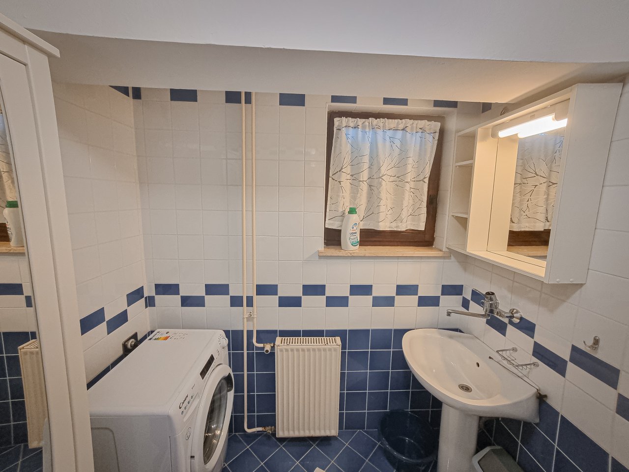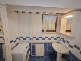 Kupaonica : kupaonica s wc-om i tušem, ručnici na raspolaganju (1 veliki, 1 mali po osobi po tjednu), perilica rublja, fen.