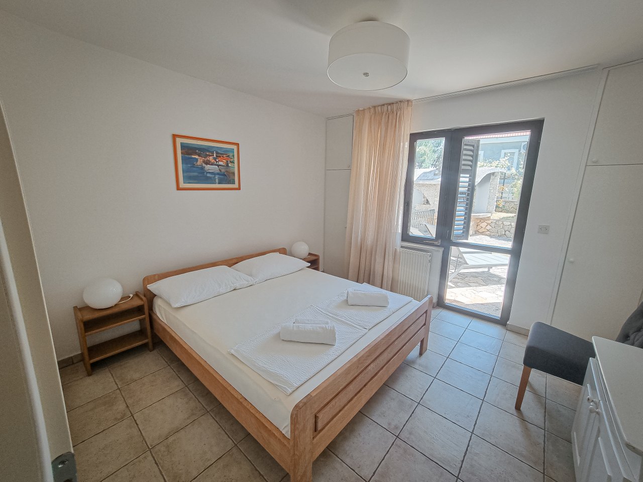 Spavaća soba : dvokrevetna soba, bračni krevet, pločice, TV sat, krevetnina se mijenja svakih 7 dana.