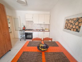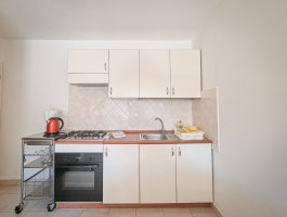 Kuhinja : stol i stolice za sve osobe, posuđe za kuhanje te pribor za jelo u apartmanu, kuhinjske krpe uključene, električni štednjak, pećnica, hladnjak sa zamrzivačem, filter aparat za kavu i kuhalo za vodu.