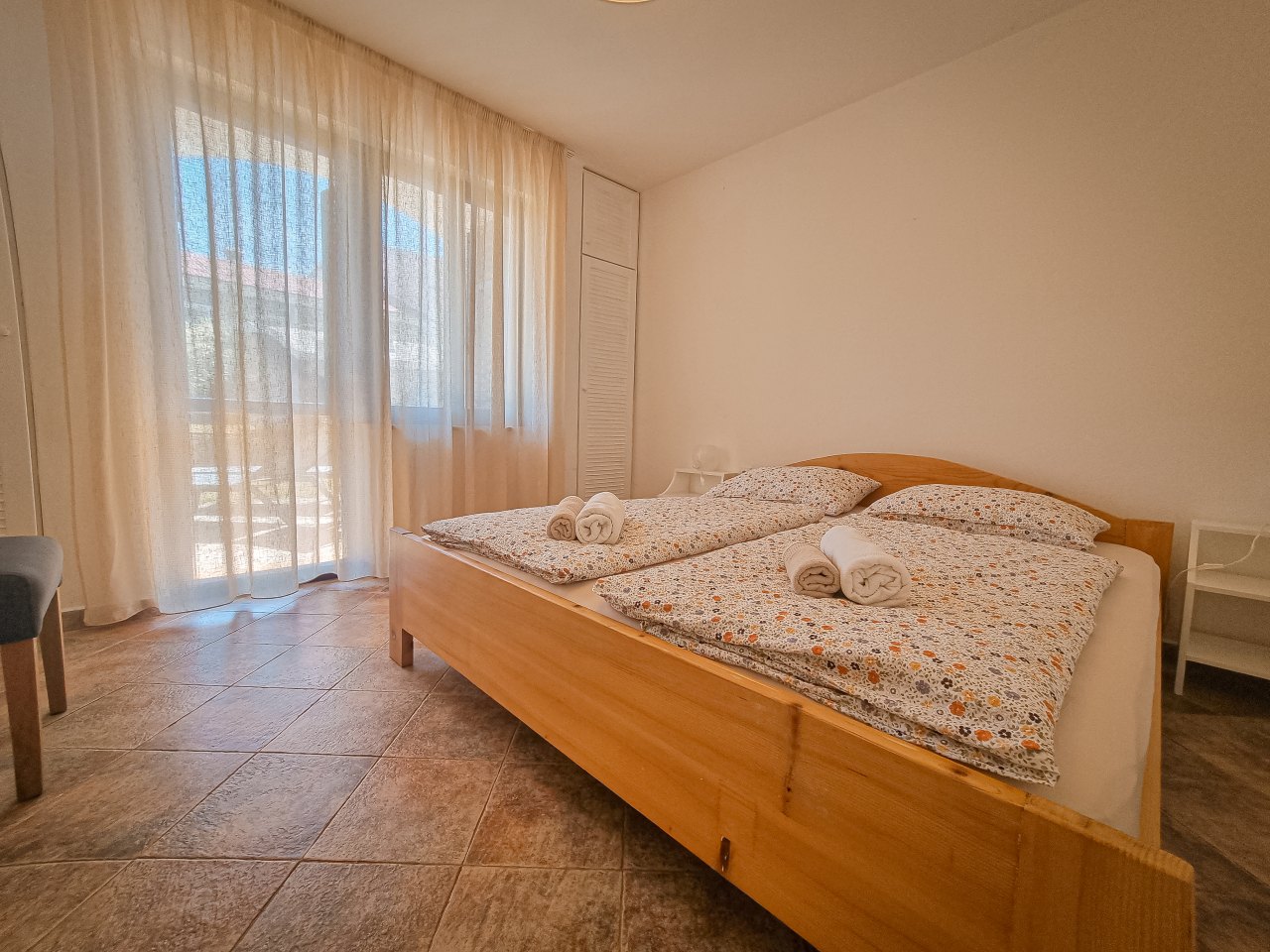 Spavaća soba : dvokrevetna soba, bračni krevet, pločice, posteljina se mijenja svakih 7 dana.