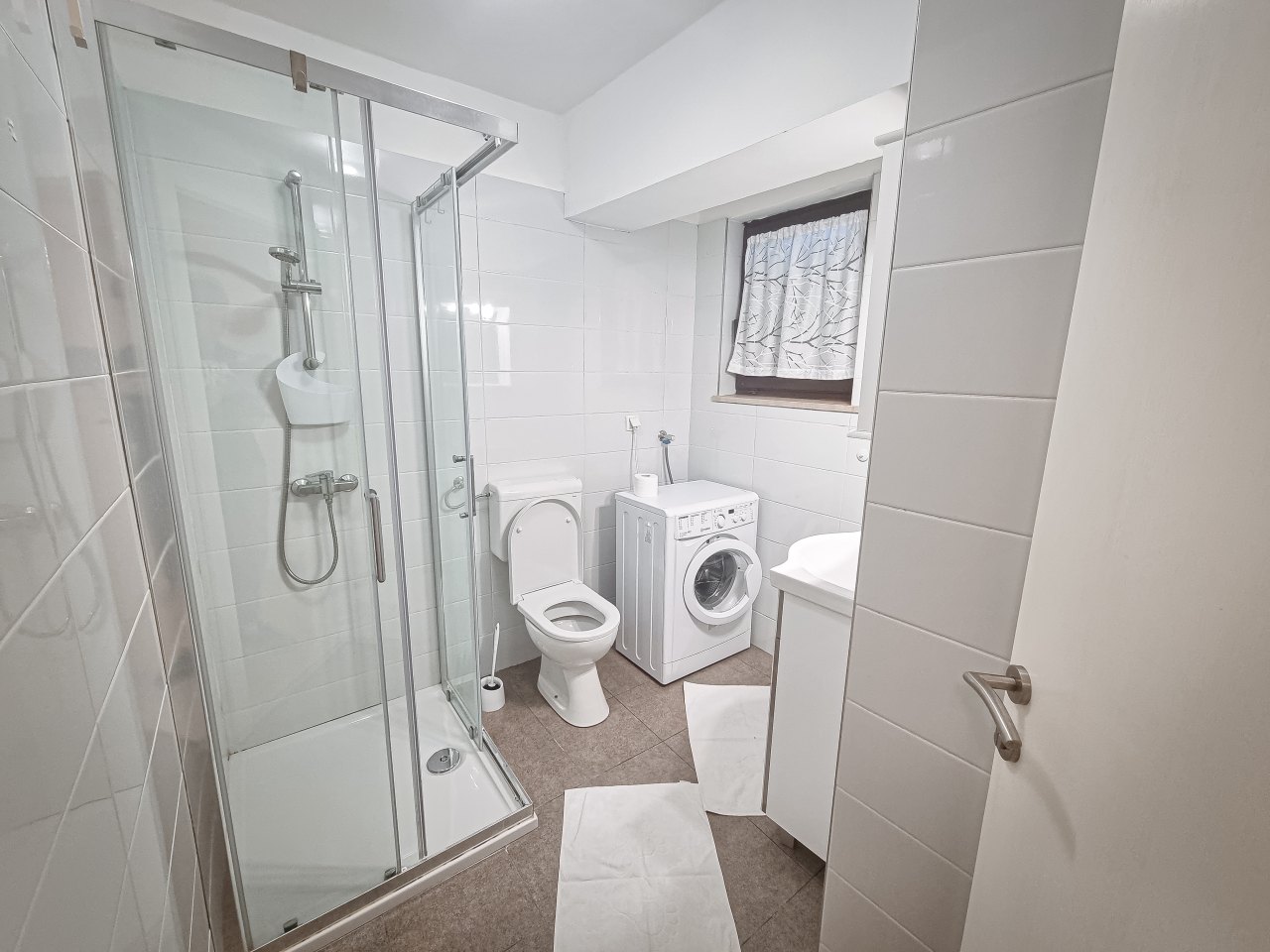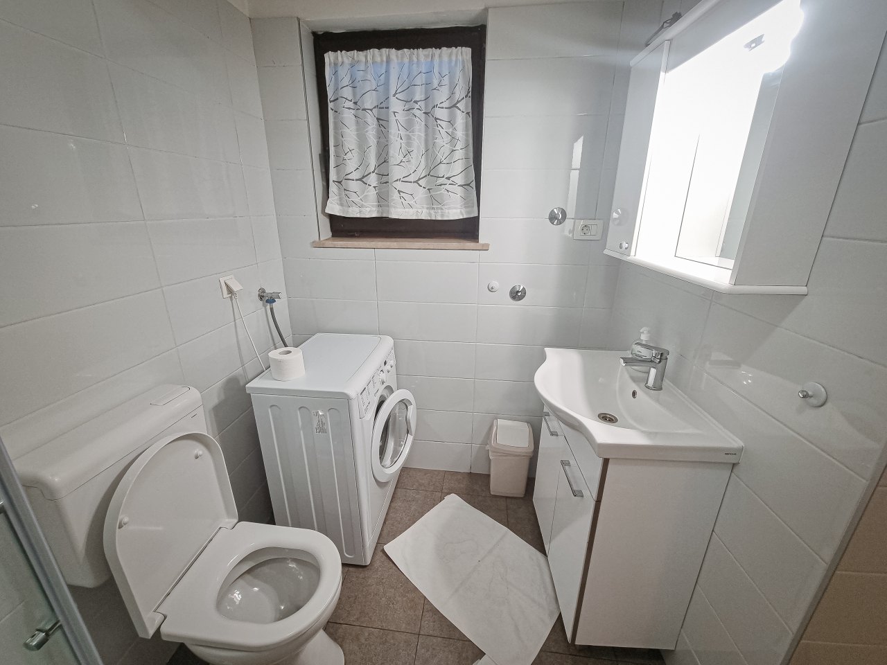 Kupaonica : kupaonica s wc-om i tušem, ručnici na raspolaganju (1 veliki, 1 mali po osobi po tjednu), perilic rublja, fen.