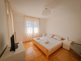 Kuhinja : stol i stolice za sve osobe, posuđe za kuhanje te pribor za jelo u apartmanu, kuhinjske krpe uključene, električni štednjak, pećnica, hladnjak sa zamrzivačem, filter aparat za kavu i kuhalo za vodu.