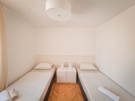 Spavaća soba 2: dvokrevetna soba, odvojeni kreveti, parket, krevetnina se mijenja svakih 7 dana.