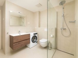 Kupaonica : kupaonica s wc-om i tušem, ručnici na raspolaganju (1 veliki, 1 mali po osobi po tjednu), sušilo za kosu, perilica rublja.