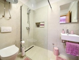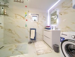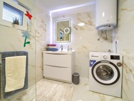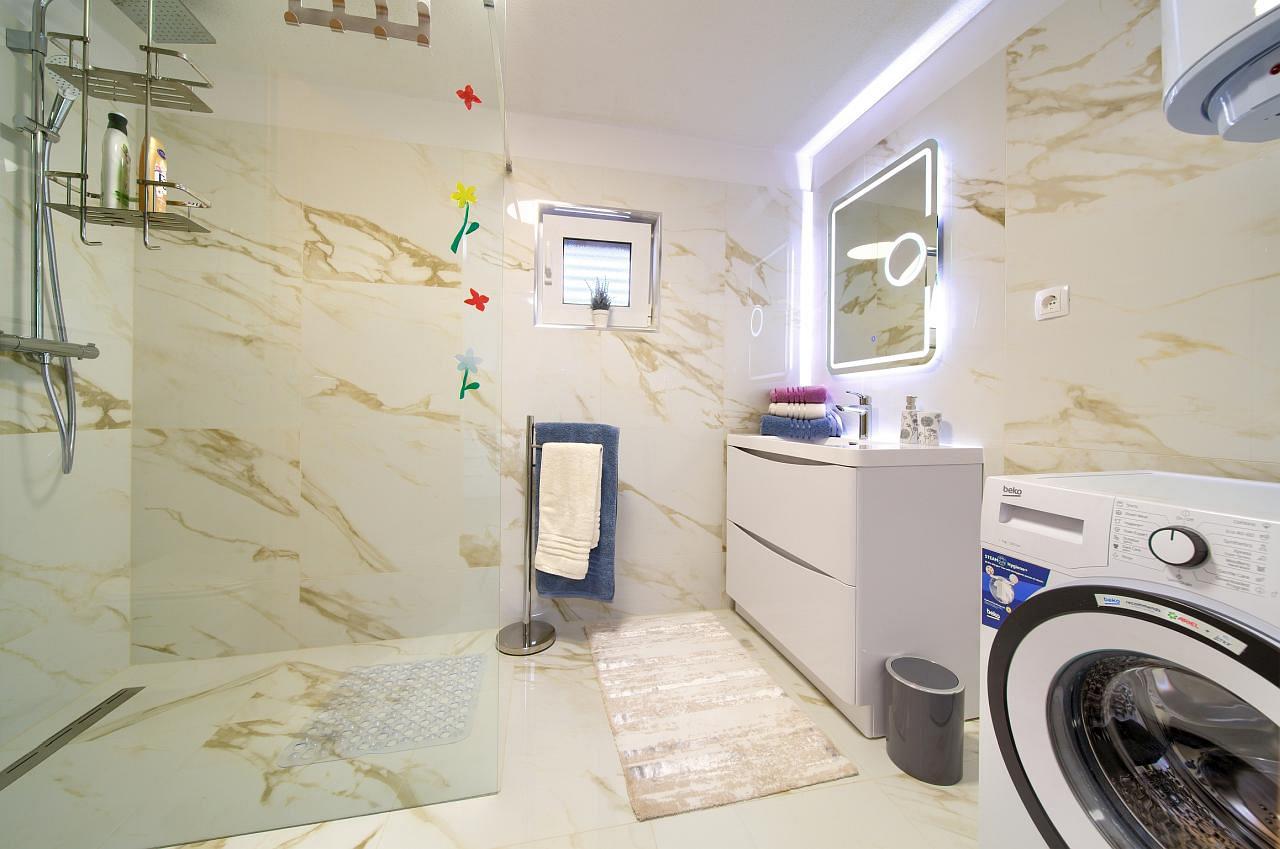 Kupaonica : kupaonica s wc-om i tušem, ručnici na raspolaganju (1 veliki, 1 mali po osobi po tjednu), perilica rublja.
