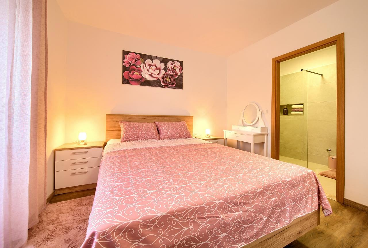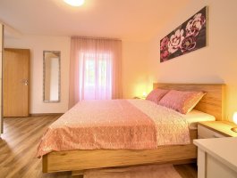 Spavaća soba : dvokrevetna soba, bračni krevet, laminat, krevetnina se mijenja svakih 7 dana.