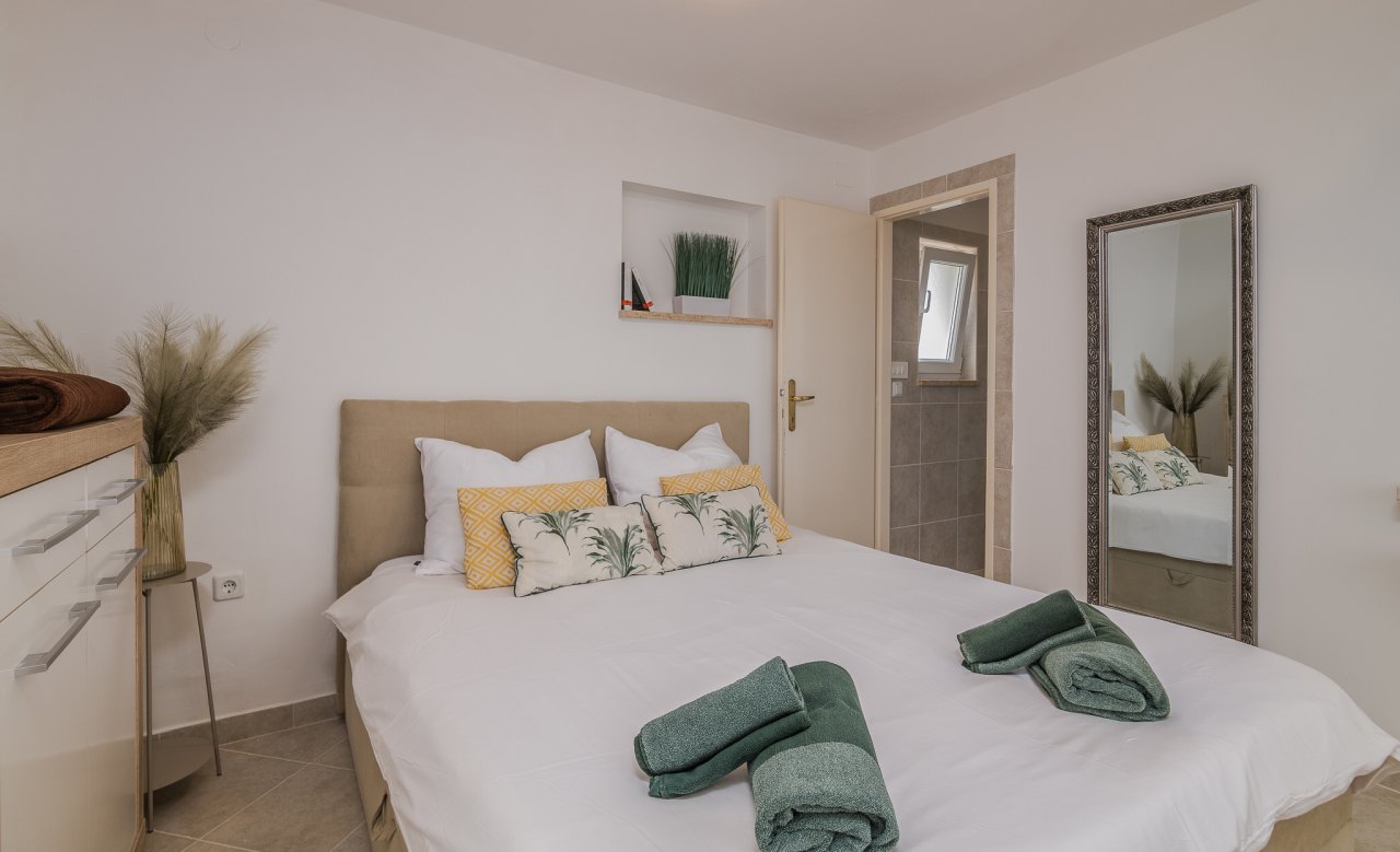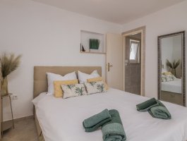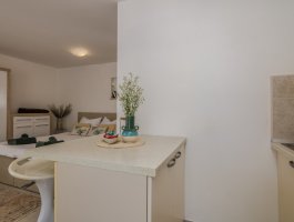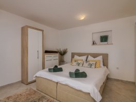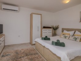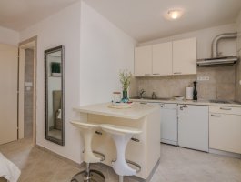 Studio: bračni krevet, krevetnina se mijenja svakih 7 dana, posuđe za kuhanje te pribor za jelo u apartmanu, kuhinjske krpe na raspolaganju, hladnjak s malim zamrzivačem, električni štednjak, perilica za suđe, filter aparat za kavu, kuhalo za vodu,SAT-TV, pločice.