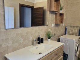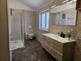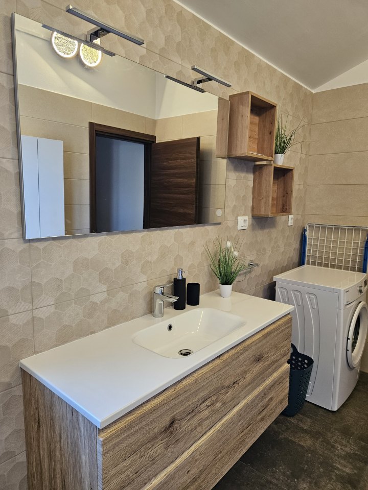 Kupaonica : kupaonica s wc-om i tušem, bide, fen, veš mašina, ručnici na raspolaganju (1 veliki, 1 mali po osobi po tjednu).
