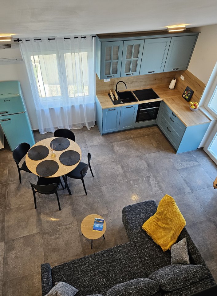 Kuhinja: stol i stolice za sve osobe, posuđe za kuhanje te pribor za jelo u apartmanu, kuhinjske krpe uključene, električni štednjak, hladnjak, pećnica, toster, kuhalo, perilica za suđe.