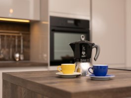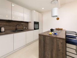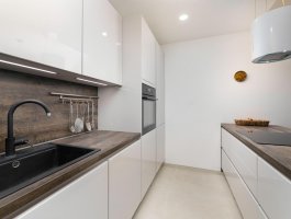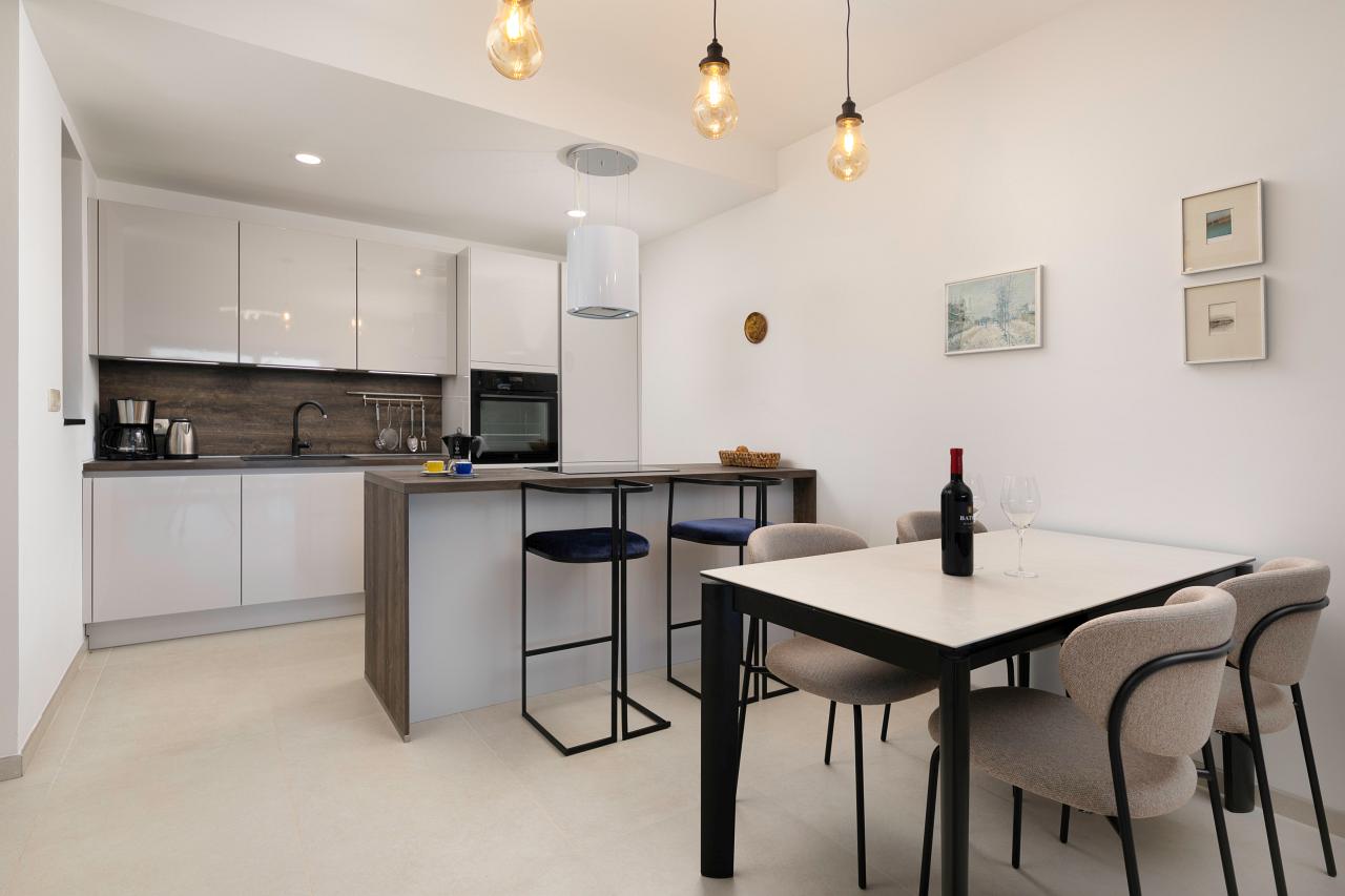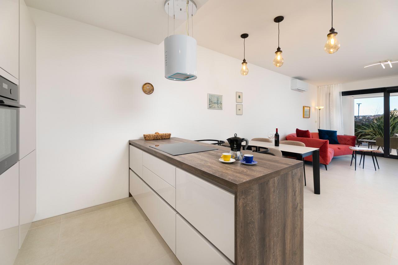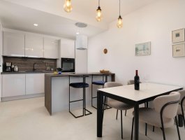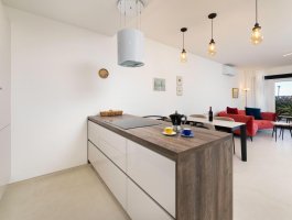 Kuhinja : kuhinjska niša, stol i stolice za sve osobe, posuđe za kuhanje te pribor za jelo u apartmanu, kuhinjske krpe uključene, električni štednjak, pećnica, hladnjak sa zamrzivačem, filter aparat za kavu, toster, kuhalo za vodu, perilica suđa.