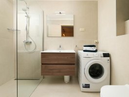 Kupaonica : kupaonica s wc-om i tušem, ručnici na raspolaganju (1 veliki, 1 mali po osobi po tjednu), sušilo za kosu, perilica rublja.