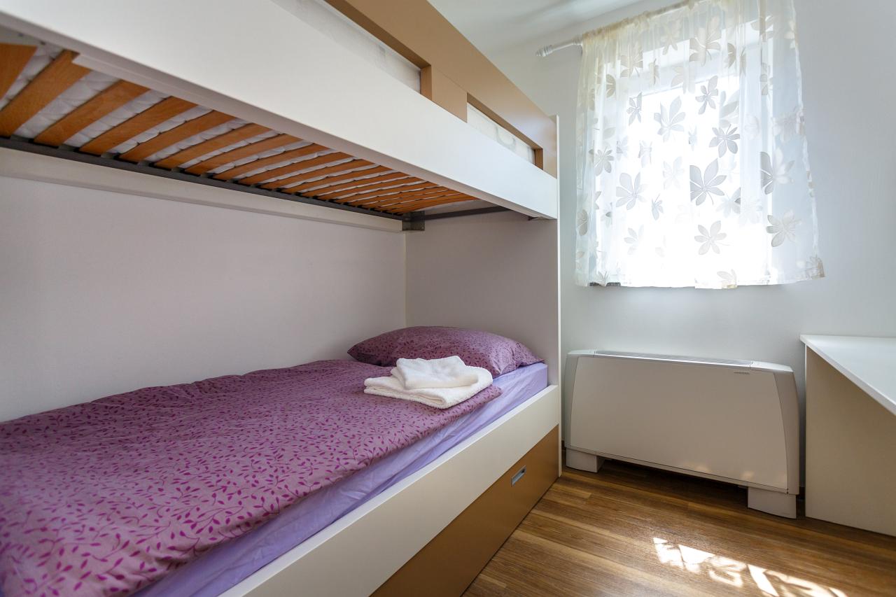 Spavaća soba 2: dvokrevetna soba, kreveti na kat, laminat, krevetnina se mijenja svakih 7 dana.