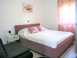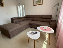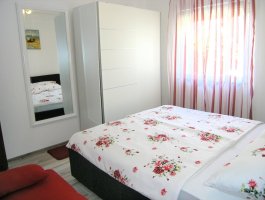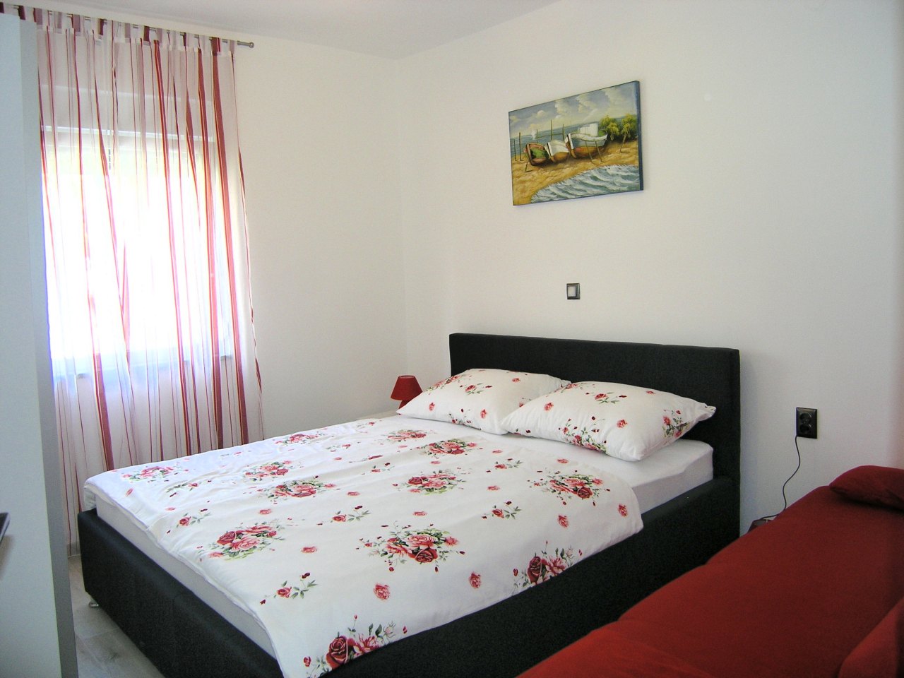 Spavaća soba 1: dvokrevetna soba, bračni krevet, jedan pomoćni ležaj na kauču, pločice, krevetnina se mijenja svakih 7 dana.