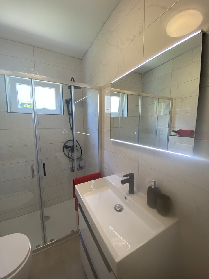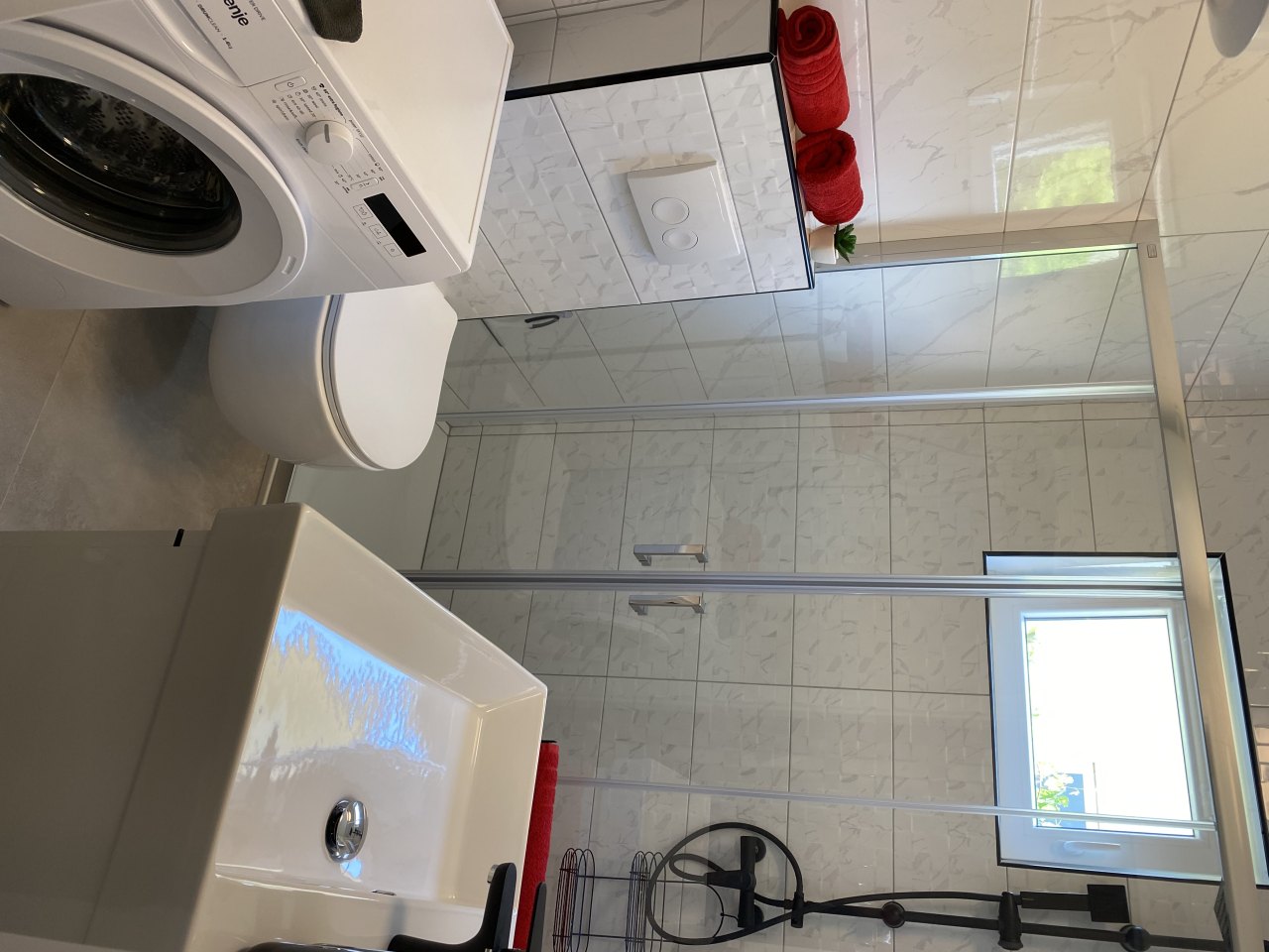 Kupaonica : kupaonica s wc-om i tušem, ručnici na raspolaganju (1 veliki, 1 mali po osobi po tjednu), perilica rublja.