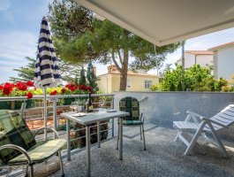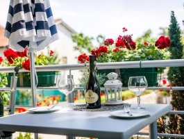 Terasa : vlastita terasa, stol i stolice na raspolaganju, djelomično natkrivena.