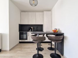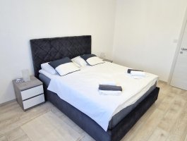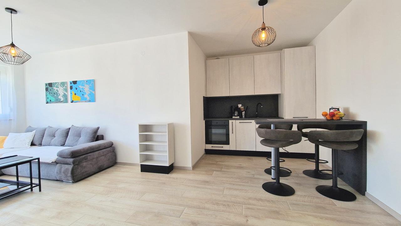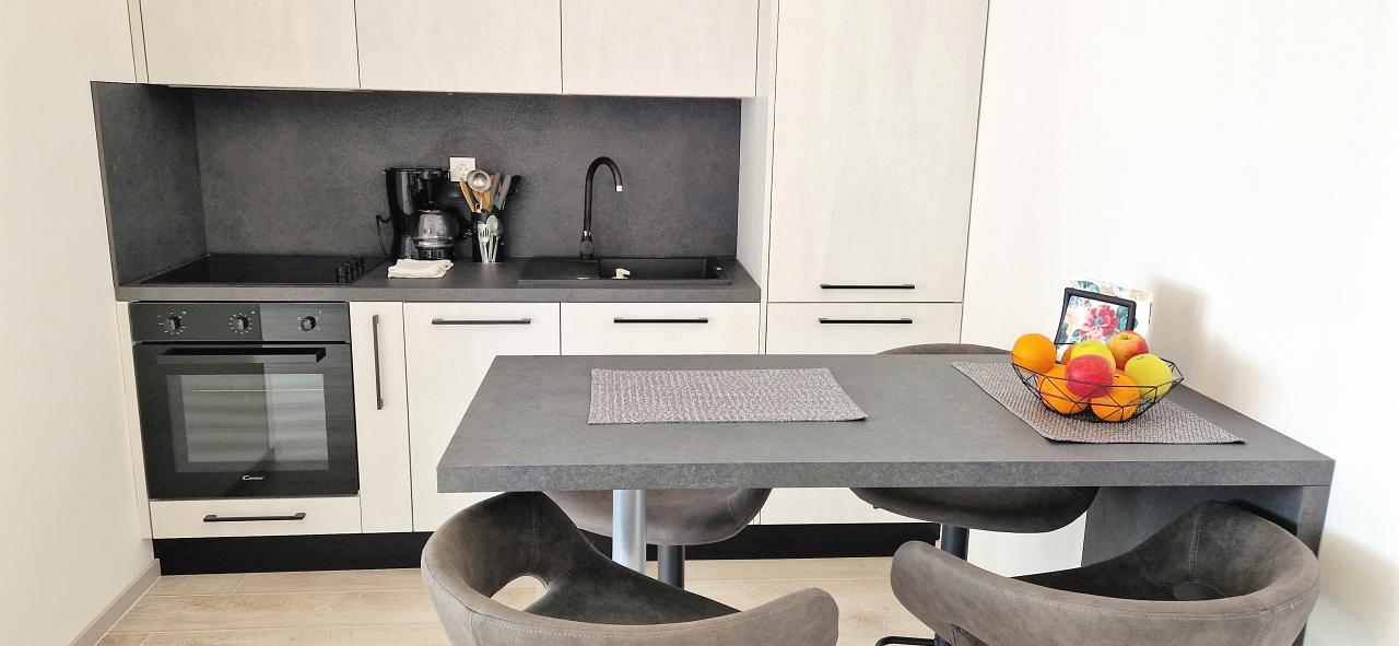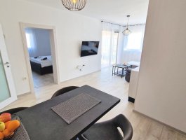 Kuhinja : stol i stolice za sve osobe, posuđe za kuhanje te pribor za jelo u apartmanu, kuhinjske krpe uključene, električni štednjak, pećnica, hladnjak sa zamrzivačem, filter aparat za kavu, toster, perilica suđa.