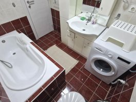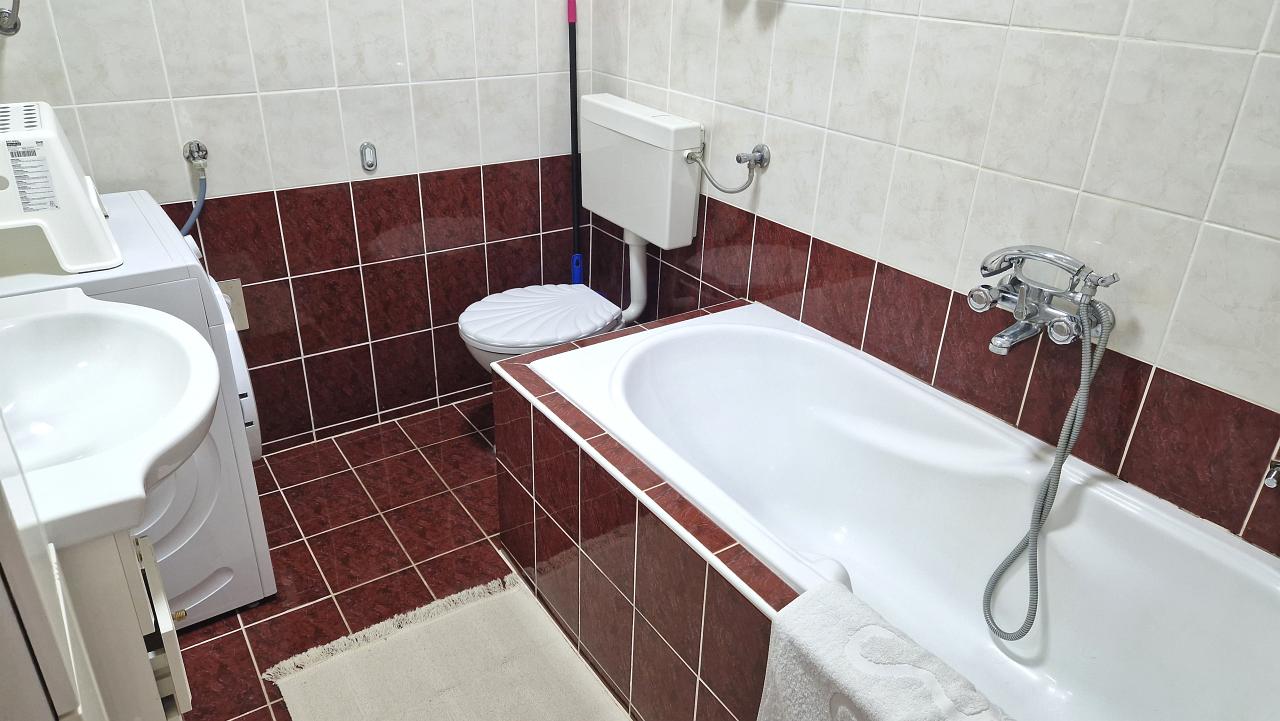 Kupaonica : kupaonica s wc-om i kadom, ručnici na raspolaganju (1 veliki, 1 mali po osobi po tjednu), sušilo za kosu, perilica rublja.