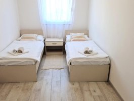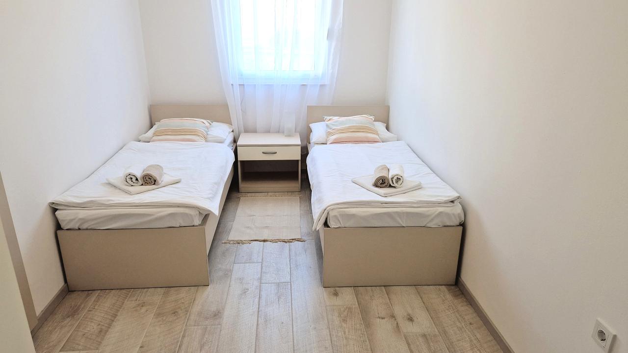 Spavaća soba : dvokrevetna soba, odvojeni kreveti, pločice, krevetnina se mijenja svakih 7 dana.