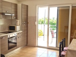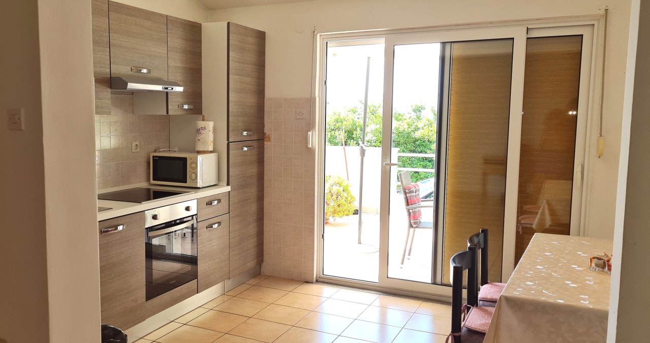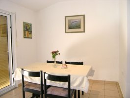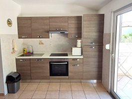 Kuhinja : kuhinjska niša, stol i stolice za sve osobe, posuđe za kuhanje te pribor za jelo u apartmanu, kuhinjske krpe uključene, električni štednjak, pećnica, hladnjak s zamrzivačem, filter aparat za kavu, mikrovalna, toster, perilica za suđe.