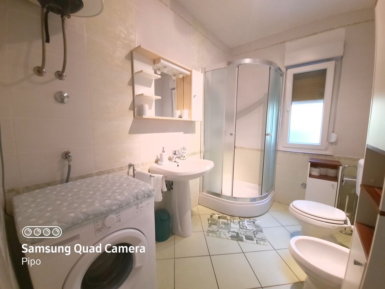 Kupaonica : kupaonica s wc-om i tušem, ručnici na raspolaganju (1 veliki, 1 mali po osobi po tjednu), perilica za rublje.