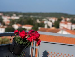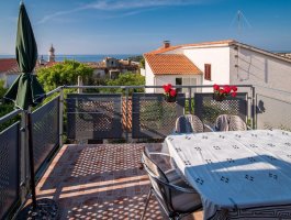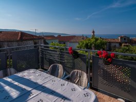 Balkon : vlastiti balkon, pogled na more, stol i stolice na raspolaganju, suncobran.