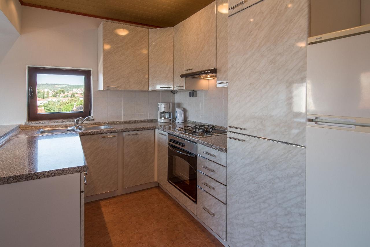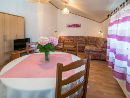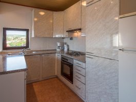Kuhinja : kuhinjska niša, stol i stolice za sve osobe, posuđe za kuhanje te pribor za jelo u apartmanu, kuhinjske krpe uključene, električni i plinski štednjak, pećnica, hladnjak sa zamrzivačem, filter aparat za kavu, perilica suđa.
