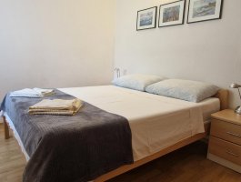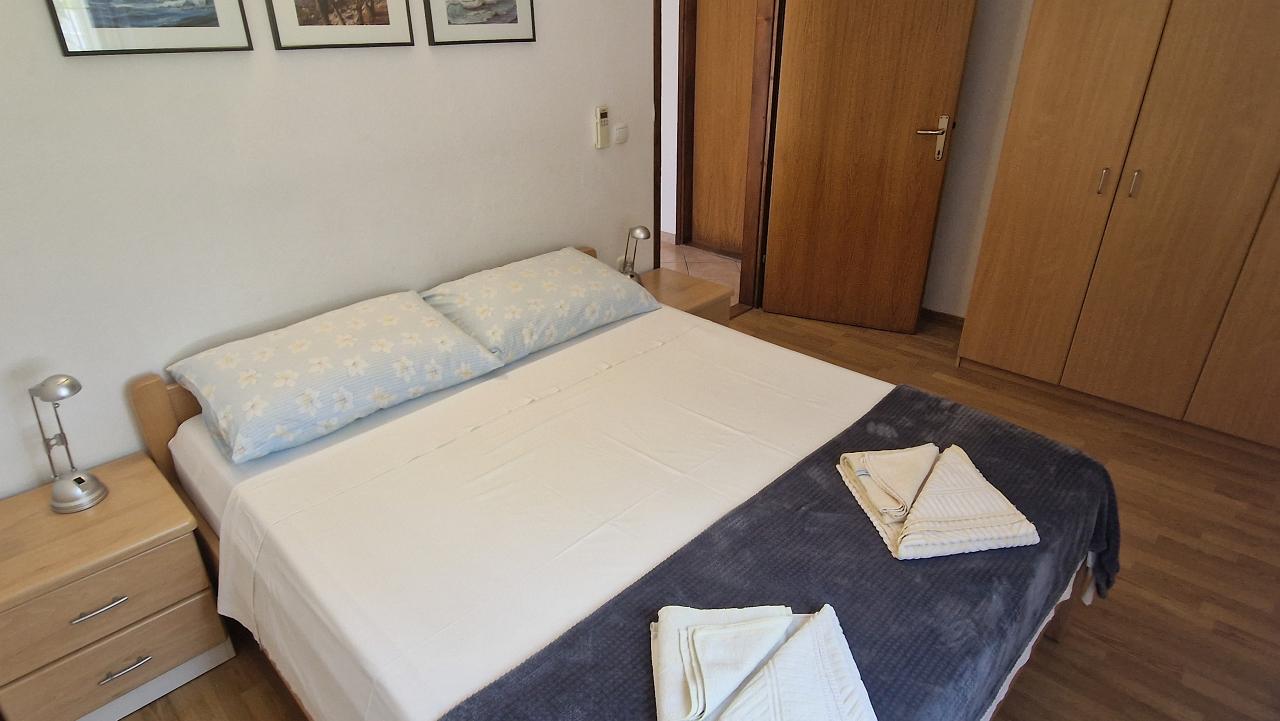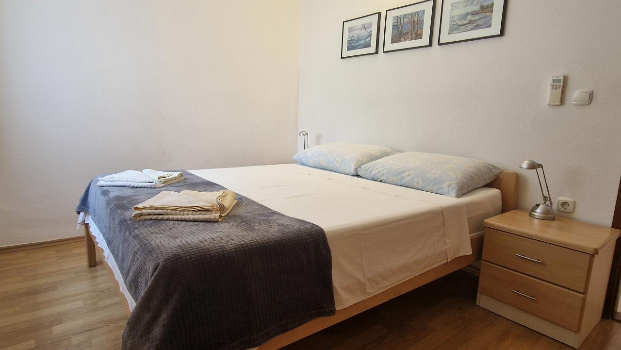 Spavaća soba : dvokrevetna soba, bračni krevet, laminat, krevetnina se mijenja svakih 7 dana.
