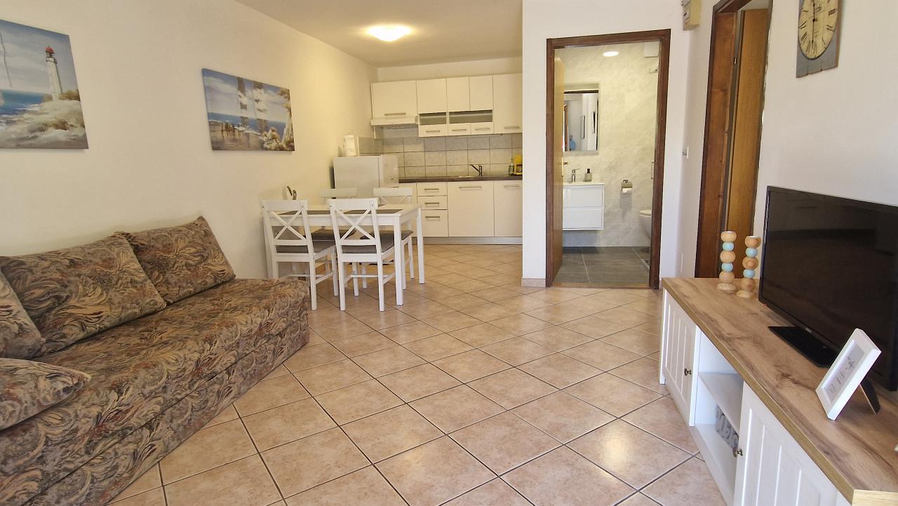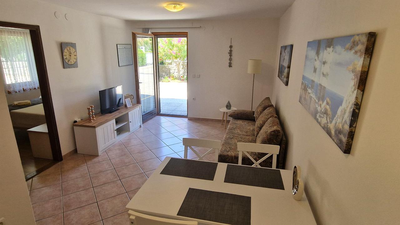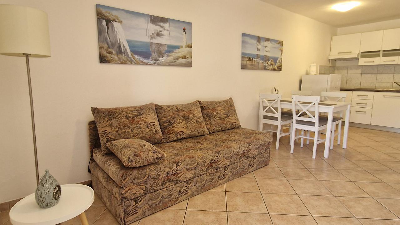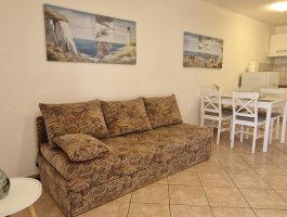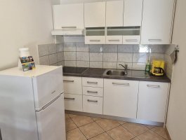 Kuhinja : kuhinjska niša, posuđe za kuhanje te pribor za jelo u apartmanu, kuhinjske krpe uključene, električni štednjak, hladnjak s malim zamrzivačem, kuhalo za vodu, filter aparat za kavu.