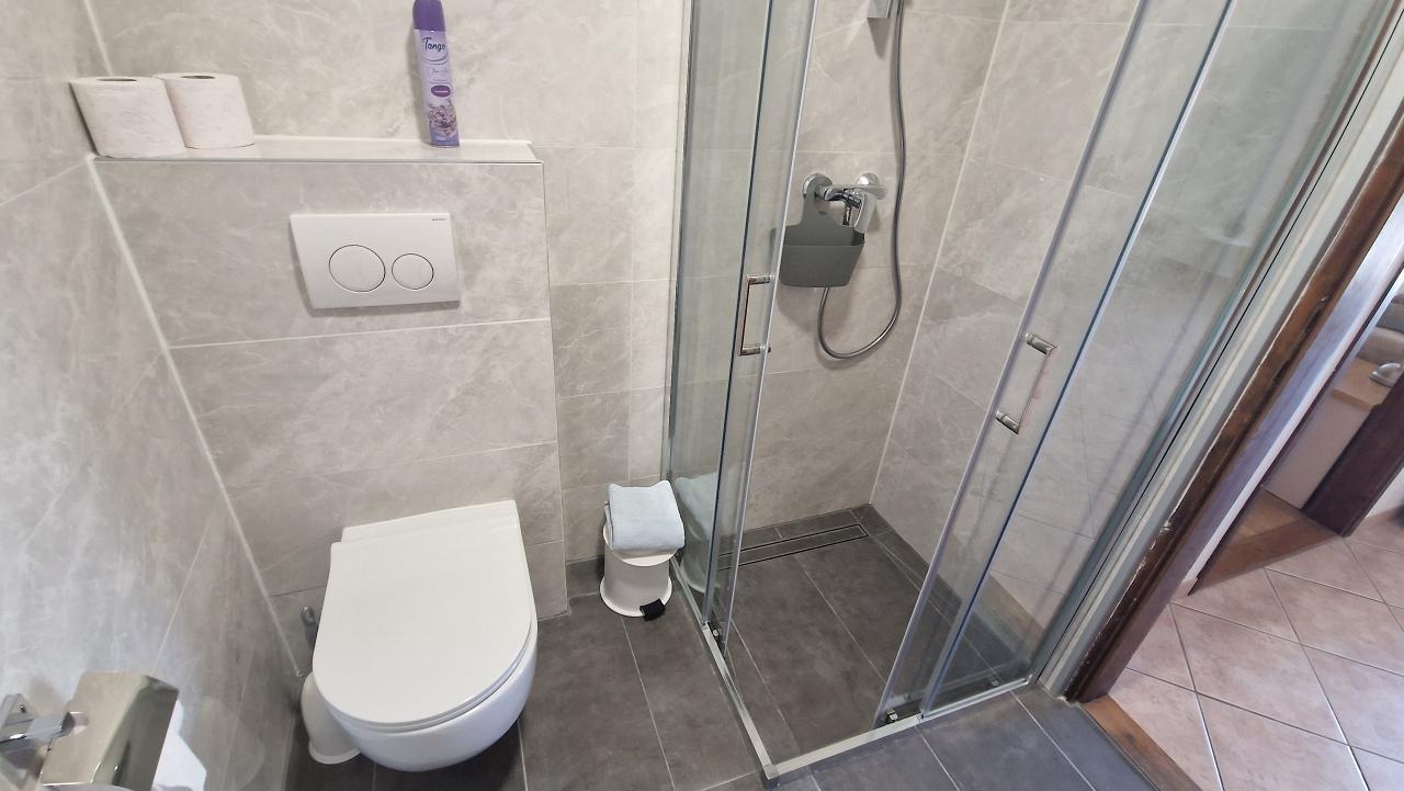 Kupaonica : kupaonica s wc-om i tušem, ručnici na raspolaganju (1 veliki, 1 mali po osobi po tjednu).