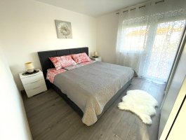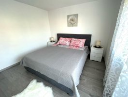 Spavaća soba : dvokrevetna soba, bračni krevet, laminat, s balkonom, posteljina se mijenja svakih 7 dana.
